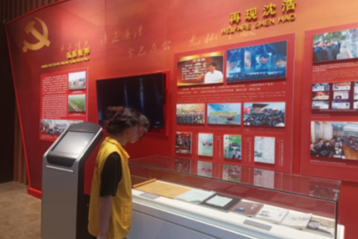 7月5日上午,实践团队满怀敬意地踏入了沈浩同志先进事迹展览馆。馆内,每一张照片都仿佛诉说着一个动人的故事,每一件展品都承载着沈浩同志心系群众的崇高精神与对党的忠诚不渝。队员们被深深触动,不仅见证了沈浩同志无私奉献的足迹,更深刻领悟到他作为人民公仆的担当与情怀。