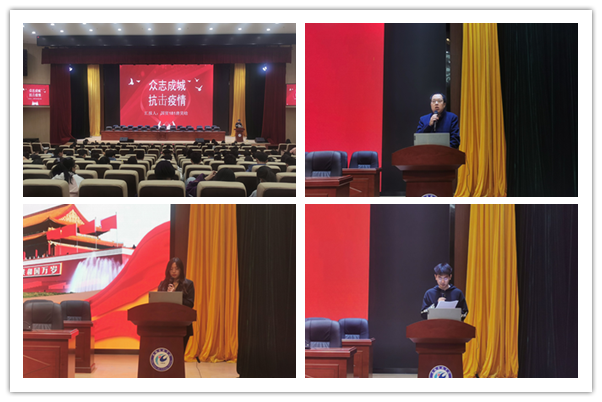 会上,四位同学分别以“弘扬抗疫精神,争做时代新人”“不平凡的逆行者”“敢于正视,不惧将来”“中国抗疫精神”等为主题,通过讲述他们在抗疫期间的亲身经历、心路历程及所见所闻,生动地阐述了逆行者们敬佑生命、甘于奉献、大爱无疆的抗疫精神、家国情怀,展示了国家抗疫期间的社会风貌、必胜决心和时代担当,以此激励学弟学妹们努力学习,奋发图强。