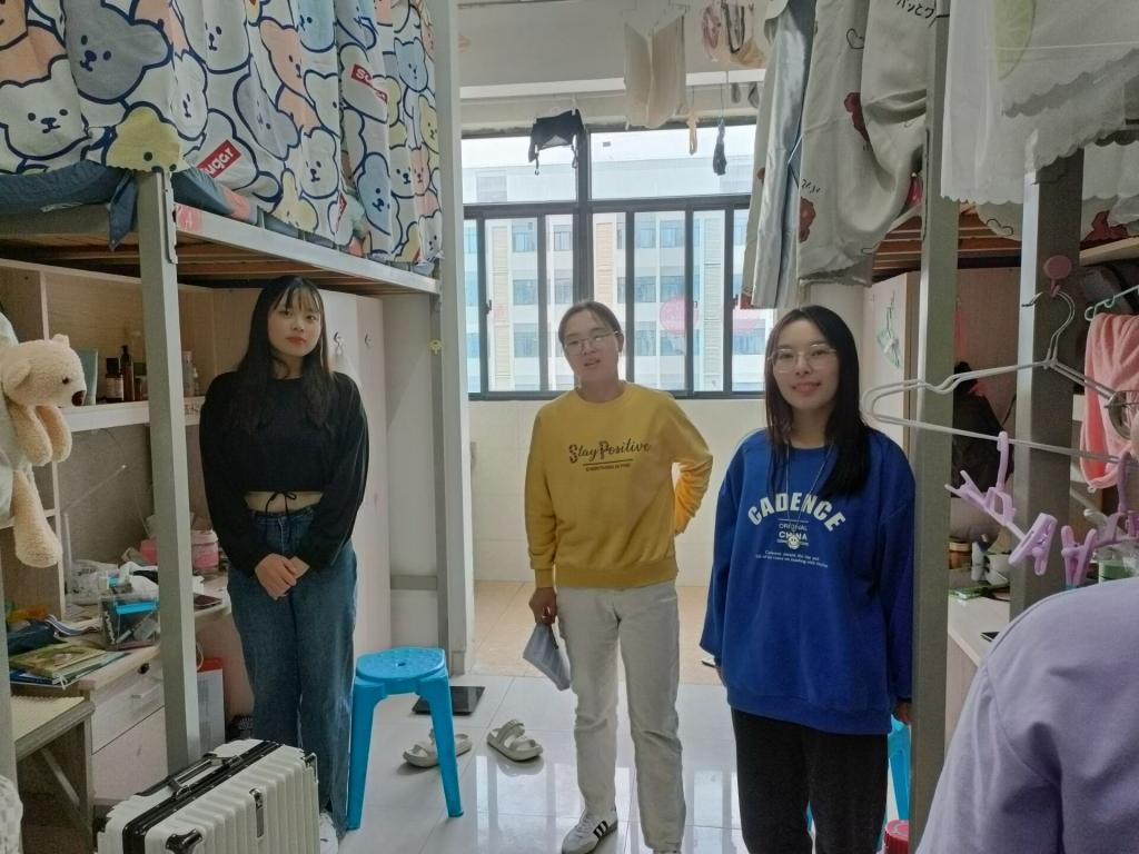 走访过程中,老师与同学们亲切交谈,宣讲学校疫情防控最新动态和最新要求,提醒同学们在疫情防控常态化的背景下保持宿舍干净卫生,做好个人卫生,强化安全防护的重要性。走访中,老师还解读了寝室违规用电、私拉电线等反面案例,强调学生宿舍内的“六个严禁”,引导学生们深刻认识违反宿舍安全管理规定的严重后果,树立遵纪守法自觉性。