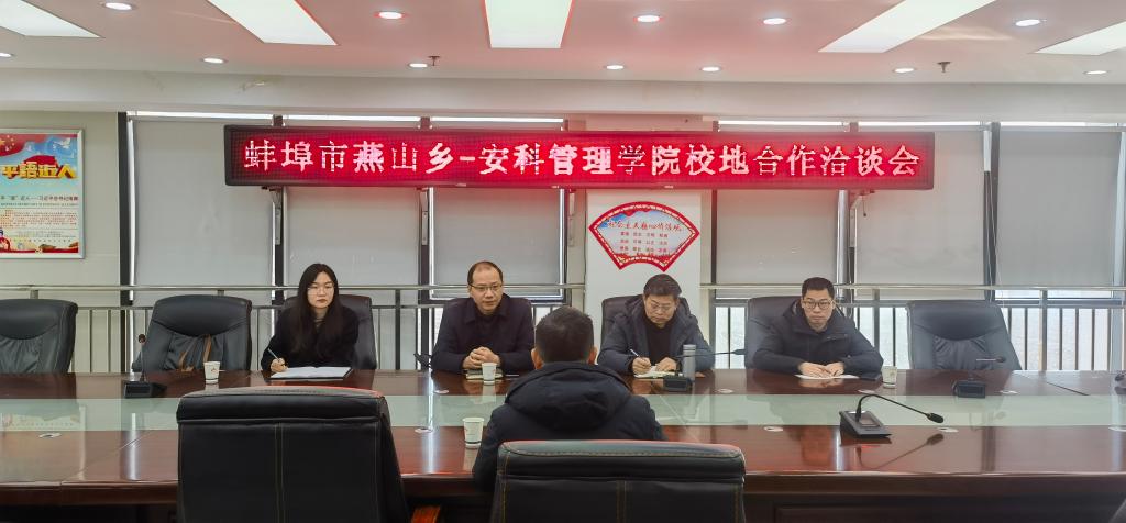 12月6日上午,管理学院党委书记丁景良、院长陈传万、副院长张国宝等一行四人赴蚌埠市蚌山区燕山乡洽谈校地产学研合作事宜,受到燕山乡党委副书记、乡长汪祥政的热情接待。