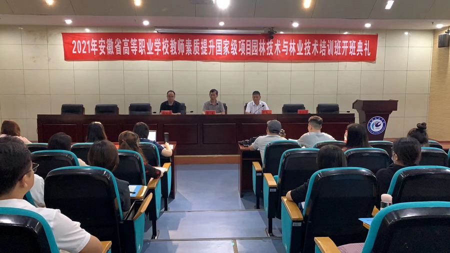 为贯彻习近平总书记关于职业教育的系列重要论述,扎实推进我省高等职业院校“双师型”教师队伍建设,有效提升我省高等职业院校教师队伍的整体素质,根据《安徽省教育厅关于做好2021年度高等职业院校教师素质提高计划国家级项目培训工作的通知》(皖教秘人〔2022〕81号)等有关文件精神,在安徽省高职师培中心的支持和指导下,6月28日上午,由我校承办的安徽省高等职业院校教师素质提高计划国家级培训项目园林技术及林业技术专业培训班开班典礼在凤阳校区新图书馆一楼报告厅举行。学校党委副书记、院长李震、继续教育学院院长杨维来、副院长张文国以及来自全省21所高等职业院校全体学员参加开班典礼,会议由杨维来主持。