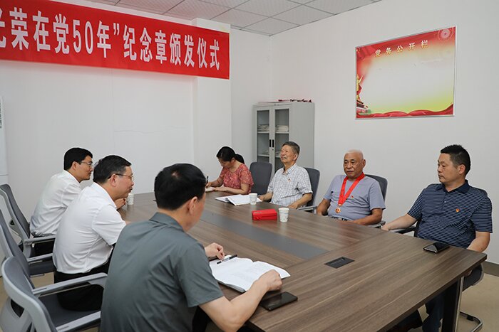 7月1日上午,在喜迎中国共产党建党101周年之际,离退休党总支室举行庄重简朴的“光荣在党50年”纪念章颁发仪式,党委委员、副院长黄远友,党委委员、组织部长钱锐等出席会议,颁发仪式由离退休党总支书记时乾主持,离退休党总支委员、在职党员等参加颁发仪式。