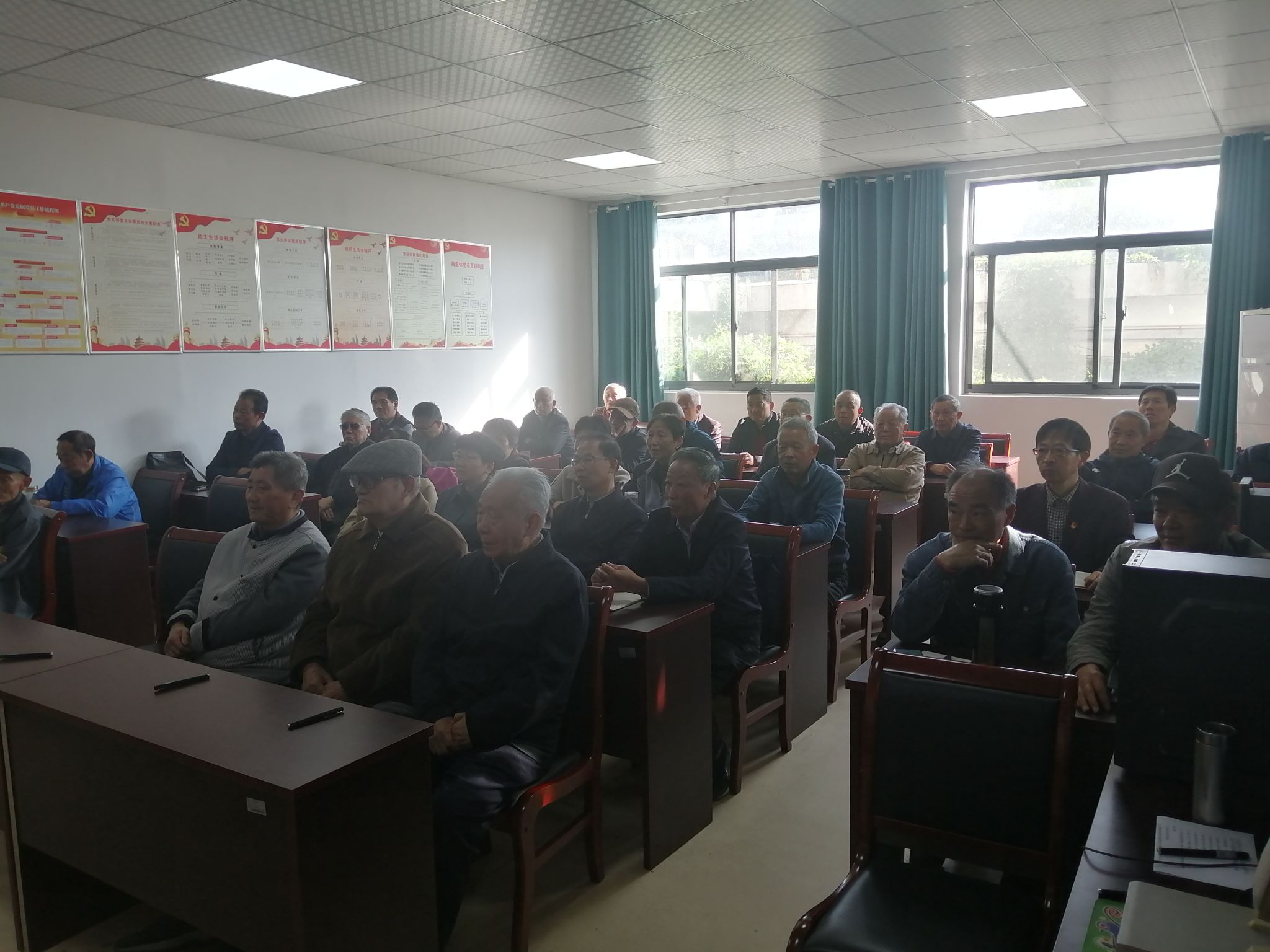 10月23日下午,离退休党总支在离退休会议室召开总支部委员会换届选举党员大会,离退休党总支上一届委员会委员在主席台就坐,会议由离退休党总支委员仲正林主持。