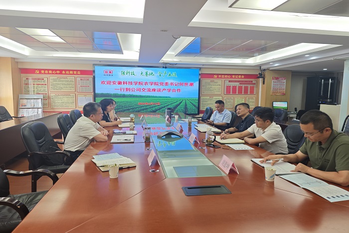 13日下午,何世潮一行抵达安徽皖垦种业股份有限公司,皖垦种业股份有限公司党委副书记、总经理杨奎,副总经理柯晓竞、产业管理部部长李昂、生产部副部长胡意坤等人热情接待了何世潮一行。杨奎转达了皖垦种业党委书记、董事长陈军的亲切问候,就皖垦集团的企业概况、发展历程、主营板块、公司荣誉等方面进行了详细介绍。何世潮深情回顾了农学院与皖垦种业的合作历程和所取得的成果,充分肯定了以李昂为代表的安科校友在皖垦种业的发展成就,表示要继续加强交流合作,赓续校友情谊,在人才培养、企业冠名班、实习实训基地建设、科研合作、专业共建、耕读教育实践基地建设等方面开展全方位合作。