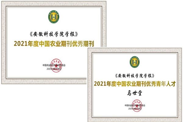 三、10月26日,2021年度中国农业期刊学术年会发布了中国农业期刊评优结果。经单位申报、专家组资格审核、专家遴选和结果公示等程序,我校学报荣获“2021年度中国农业期刊优秀期刊”、马世堂博士荣获“2021年度中国农业期刊优秀青年人才”奖项。