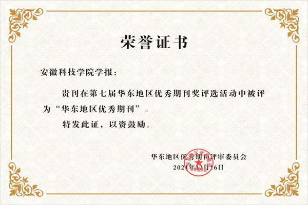 五、为激励期刊出版单位提高期刊出版质量,发挥优秀期刊的示范带动作用,增强期刊核心竞争力,进一步推动华东地区期刊出版工作发展,经2021年12月16日第七届华东地区优秀期刊评审委员会最终评定,我校学报被评为“华东地区优秀期刊”。(特约通讯员:刘晓丹 审核:李同杰)