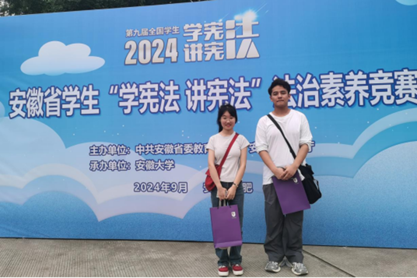 9月21日,安徽省第九届学生“学宪法 讲宪法”比赛在安徽大学成功举办。10月8日,比赛结果出炉。本次比赛分为“法治素养竞赛”和“演讲比赛”两个赛道。我校4位学子入围比赛,王浩童和程智慧两位同学分别荣获“法治素养竞赛”赛道高校组二等奖、三等奖(指导教师:王洪雨);陈安心和李文文两位同学荣获“演讲比赛”赛道高校组三等奖(指导教师:张晓云)。