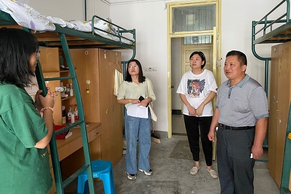 9月16日下午,动物科学学院党总支书记汪洋、院长刘德义、副书记李忠在辅导员李焱、贾方敏、胡文丽的陪同下深入宿舍,看望慰问2020级新生。