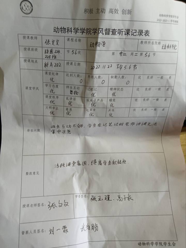 为加强学院学风建设,全面落实立德树人根本任务,促进学生健康全面发展和综合素质全面提高。本学期伊始至今,动物科学学院坚持教育引导,强化制度建设,切实把学风督查工作落到实处,为学生成长成才营造良好氛围。