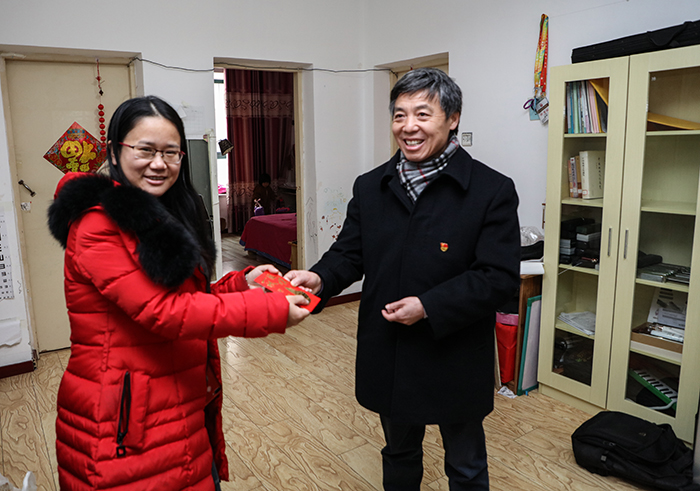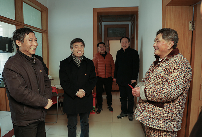 1月14日上午,在新春佳节即将到来之际,校党委书记蒋德勤,党委副书记、校长李震,党委副书记韦文联等党政领导深入基层,对党员教师、老党员、老干部进行走访慰问,代表学校党委向他们致以诚挚问候和新春祝福。党委组织部、党委教师工作部、工会及相关党总支负责同志陪同慰问。