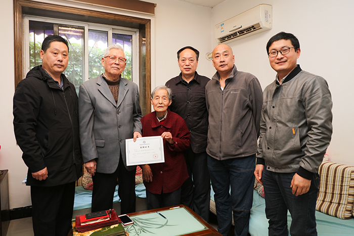 时乾代表学校向两位老同志敬呈了《开云网页版校史馆捐赠证书》,祝福两位老同志健康长寿,生活愉快,相约建校70周年校庆。