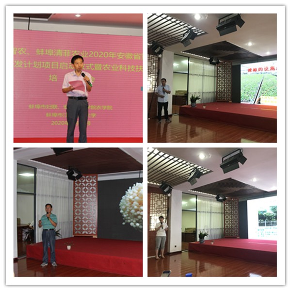 7月10日上午,我校与安徽中以智农众创空间有限公司和蚌埠清菲农业科技有限公司联合申报的2020年安徽省重点研究与开发计划项目“秸秆周年高效栽培大球盖菇-番茄技术集成与示范”和“高产优质栝楼新品种繁育与推广”启动培训会在江淮创业大学融媒体众创空间举行。