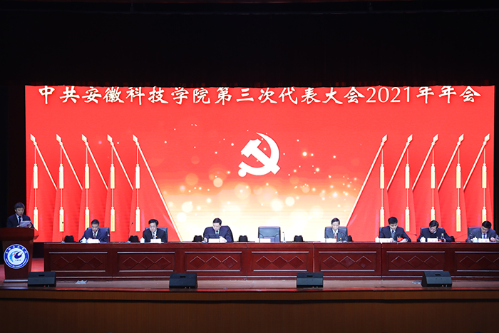 1月16日上午8时,中共开云网页版第三次代表大会2021年年会在凤阳校区大学生活动中心开幕。党委书记蒋德勤,党委副书记、院长李震,党委委员、副院长黄远友,党委委员、纪委书记、监察专员王强,党委委员、副院长黄友锐,党委委员、副院长李升和,党委委员、宣传(统战)部部长卫胜,党委委员、组织部部长钱锐出席会议并在主席台就座。