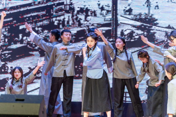 颁奖结束后,由我校师生共同创作表演的庆祝中国共青团成立100周年舞台剧《觉醒》举行首演。《觉醒》通过舞台艺术的形式再现了五四运动那段救亡图存、激情燃烧的岁月,展现了一个民族从沉睡到觉醒的时代故事。舞台剧共有八幕,依次呈现袁世凯签订二十一条卖国条约,陈独秀、李大钊、毛泽东等爱国青年探索寻找救亡图存道路,创办新青年、传播马克思主义、五四游行示威、中国共产党成立等重大历史事件,表现了中国青年的身影活跃在每一次影响国家民族进程的重大历史事件里,在各个领域为国家民族的解放斗争、发展进步和繁荣富强奉献力量;表达了一百年来在中国共产党的坚强领导下,中国青年已成为国家振兴、民族崛起的最重要力量之一,当代青年更是要“承风骨亦有锋芒,有梦则刚”,在新时代的青春赛道上奋力奔跑出当代青年的最好成绩。舞台剧从创作、排练到演出,学生全程深度参与,每一个角色、每一个动作、每一个细节均倾情打造,用心用情用力演出了精气神,在舞台上为广大师生呈现出了一堂生动的思政课。