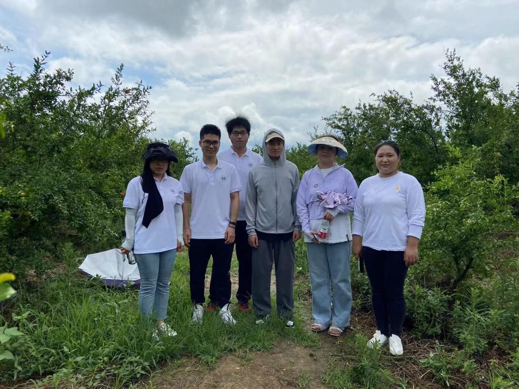 果树小分队分别走访调研了小岗村梨园公社、小岗葡萄示范园和小岗村石榴种植园等,与种植大户进行了详细的沟通交流,团队成员做了详细记录,并带着这些问题实地进入果园进行技术指导。他们发现,果园中普遍存在鸟害严重、挂果量少、病虫害烂果较多、技术指导不足、稳定的销路没有等情况。队员们利用自己的专业知识与果园种植大户就并针对果树种植、生产与销售环节出现的问题展开讨论提出了专业化的建议与技术指导。