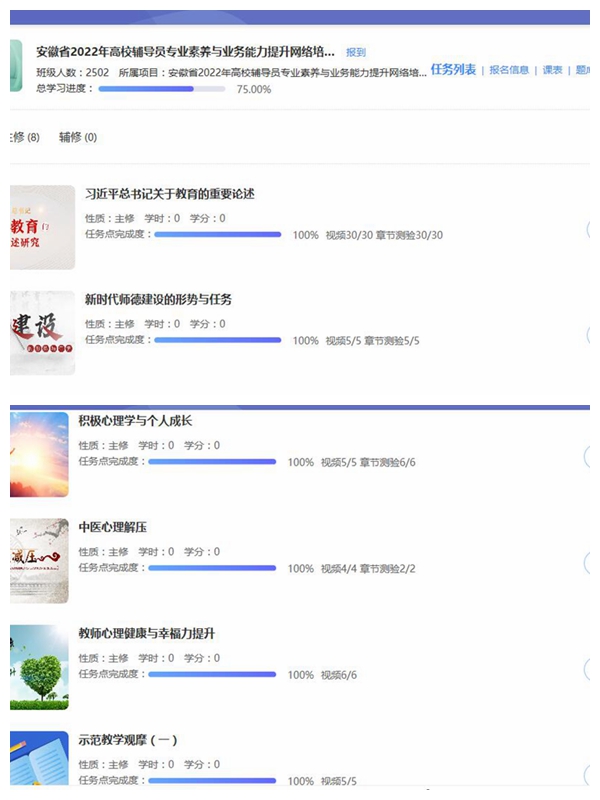 聚焦辅导员专业素养与业务能力提升学校选派93名专兼职辅导员参加了安徽省2022年暑期高校辅导员专业素养与业务能力提升网络培训班。本次培训班采用线上培训方式进行,由教育部高校思想政治工作队伍培训研修中心(安徽师范大学) 和安徽省高校网络思想政治工作中心联合承办。培训班通过线上视频、线上直播等方式组织学习了《习近平总书记关于教育的重要论述》《新时代师德建设的形势与任务》《积极心理学与个人成长》等内容,有效开阔了广大辅导员理论视野、增强了辅导员育人情怀、坚定了育人使命。