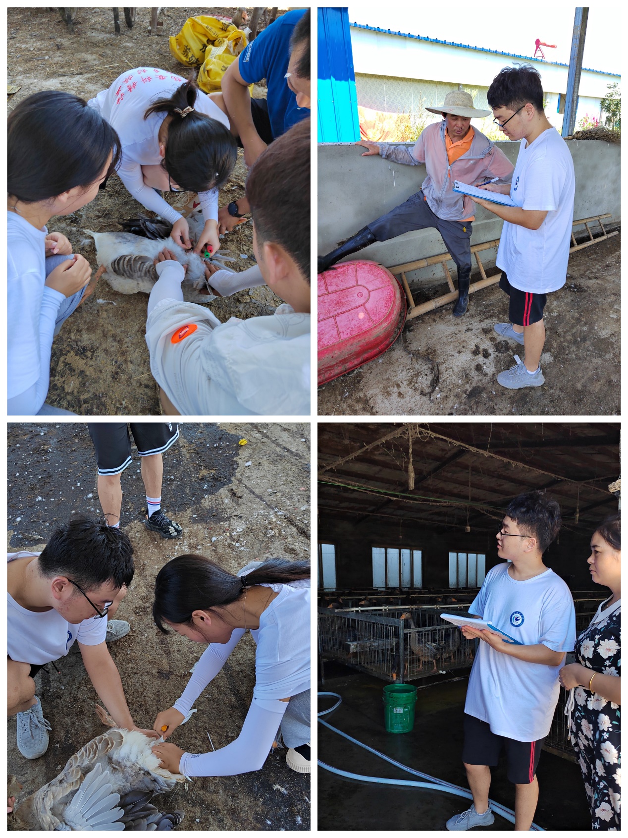 团队成员大力发扬安科学子吃苦耐劳的优良品质,不辞辛苦,活动期间气温高达40℃,研究生刘青兰甚至出现中暑症状,也没有叫苦喊累,几名研究生在挥汗如雨中完成了实地走访、问卷调查、样本采集。同时对采集的样本进行实验室检测,同步完成流行病学调查,掌握了霍邱县朗德鹅疫病发生情况,在实践中将理论与实际相结合,用自身所学专业知识解决朗德鹅生产过程中存在的问题,为该县朗德鹅养殖疫病防控提供依据。