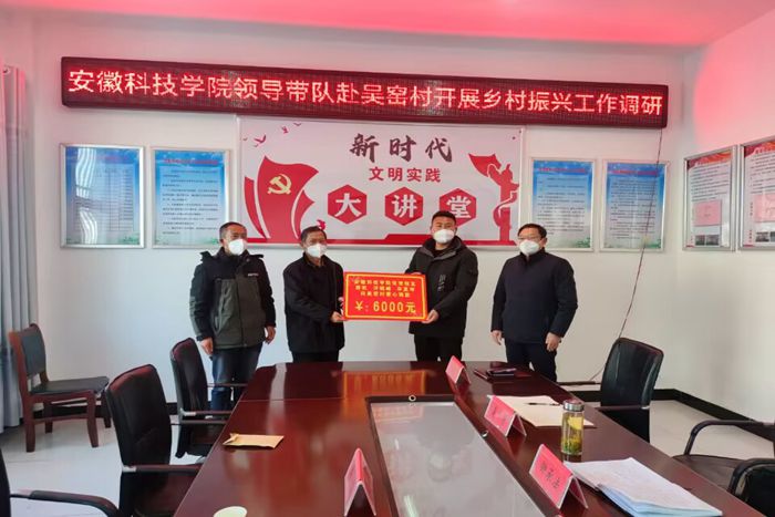 此次考察调研,是学校发挥服务社会职能、融入乡村振兴战略的一项有力举措。李震代表学校为两个定点帮扶村分别捐赠了现金。本次捐赠的款项由我校优秀校友郭凯(安徽来一克实验科技有限公司总经理)、许晓峰(合肥诺为尔基因科技服务有限公司总经理)和毕夏坤(力康生物医疗科技控股有限公司中国区销售总监)共同筹集。(特约通讯员:刘晓丹 摄影:李新伟 审核:陈丰 姚文均 编辑:张威)