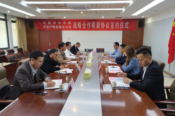 11月7日下午,学校与平安产险安徽分公司战略合作签约仪式在凤阳校区新图书馆十楼会议室举行。校党委副书记、院长李震,平安产险安徽分公司副总经理刘岩松,人力资源部经理杨静文,理赔部经理、我校2010届校友朱佳出席签约仪式。