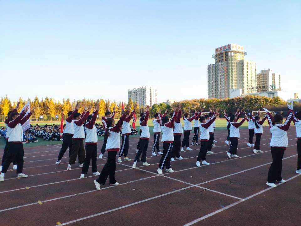 在比赛中,伴随着广播操轻快的音乐,同学们精神饱满,动作有力,方阵整齐划一,展示出每个班级蓬勃昂扬的精神风貌,洋溢着活力、阳光的青春风采。各班级精心设计了不同的入场、退场方式,将简单的广播操演绎出不同的精彩,为在场师生奉献了一场青春洋溢、活力四射的视听盛宴,赢得观众的阵阵掌声。整个展示过程精彩万分又惊喜不断,充分体现了同学们的参与热情和独特创意。