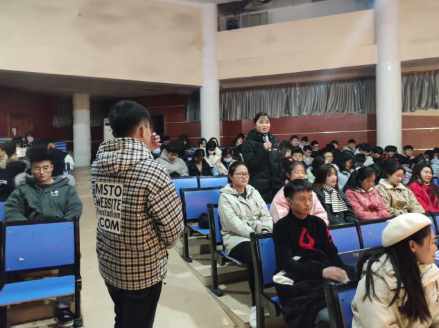 杨芳以“化茧成蝶”为主题,从自身经历切入话题,反思了自身的问题,激励新生们为未来美好生活不懈努力。从龟兔赛跑的故事入手,向同学们讲解了勤奋、目标、方法和与时俱进的重要性,她强调大学生在生活中要与优秀的人交朋友,找到自己兴趣所在,利用好时间,找准目标,努力坚持。