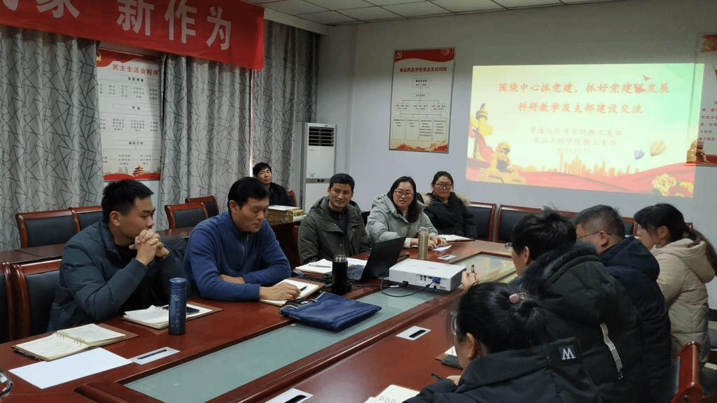 12月23日下午,食品工程学院食品教工党支部联合资源与环境学院环境科学与工程系教工党支部在食品工程学院会议室开展了一次支部建设经验交流会。食品工程学院党总支书记付光玺出席会议。