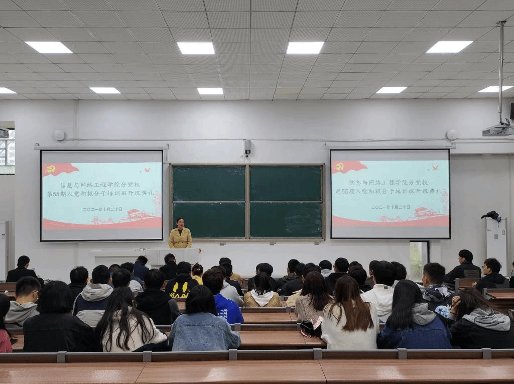 为加强对入党积极分子进行党史党性教育,提高党员发展质量做好党员发展教育工作,10月20日下午,信息与网络工程学院在致知楼B111举办第55期入党积极分子培训班开班典礼。学院党委副书记韦乃学,专职辅导员陈凯、李军成、崔北坤出席会议。培训班78名学员参加会议,会议由陈凯主持。