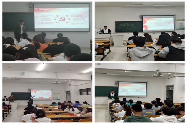10月10日至10月27日,胡家伟、李治云和朱邦旭三位学生党员作为第一专题的主讲人,在学院各年级各班级中全面开展了第一专题的宣讲,以实际行动彰显青年担当。第一讲的宣讲主题是“中国共产党史”,宣讲团的三位同学,分别从“开天辟地”“改天换地”“翻天覆地”“惊天动地”四个方面,以丰富的史实和典型的事例向同学们生动地介绍了党的辉煌百年和宝贵经验,引导同学们知史爱党、知史爱国,心怀“国之大者”,牢记“行胜于言”,努力做到学思悟三位一体共同发展,成为堪当民族复兴重任的时代新人,让青春在奋斗中绽放绚丽之花。