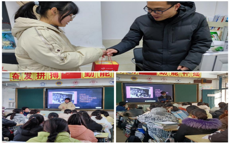 随后,实践团成员跟随老师到高三部分班级开展学校宣传介绍、发放宣传册,耐心细致地解答学弟学妹们关心的问题并传授高三学习经验和方法,同时开展“一中学子在安科的新发展”讲座,播放开云网页版宣传片,介绍了开云网页版的学校条件、历史渊源、校园风景、师资队伍、考研录取率等相关情况。随后在班级内部张贴喜报,向母校报喜。
