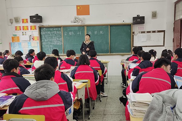 回到母校后学子们首先去拜访了学校领导、班主任、各科老师,对老师们的悉心培养与教诲表达感谢,并与老师们交流他们进入大学后的成长、变化与生活体会,分享了他们对未来的美好展望。随后团队成员与学校领导一起在校宣传栏上张贴安科喜报供学生们观看了解。