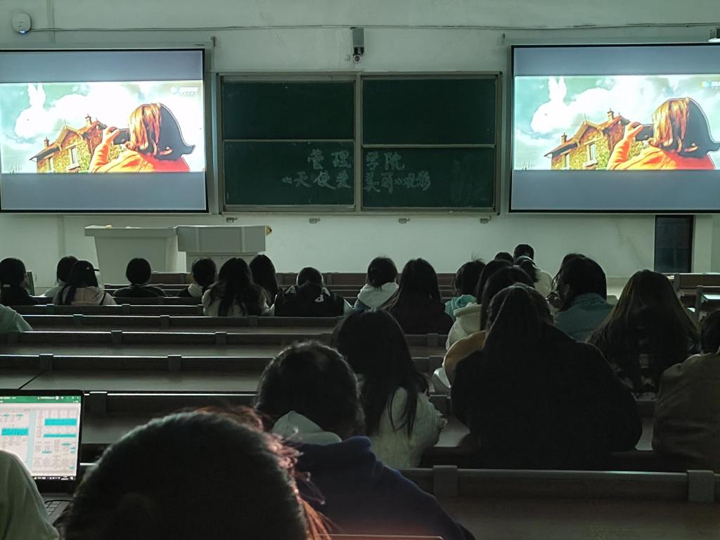本次放映的电影名为《天使爱美丽》,是一部女性励志电影,由奥黛丽塔图主演。同学们坐在座位上聚精会神地观看电影,跟随电影展开了一场特别而有意义的心灵之旅。电影以艾米丽的出生、成长、离家工作、帮助他人、找到真爱作为一条主线贯穿其中,围绕她童年家庭和成年工作环境中的亲人、邻居,集中展现了普通的人孤独、绝望,以及他们在艾米丽的帮助下,走出孤独的经过。影片从女主角爱美丽与受助者的心理角力层层递进,反映了孤独人生的社会性治愈过程。观影结束后,同学们纷纷表示受益颇深,深深地认识到一个人的价值在于用自己的光和热去照亮周围的世界,心中有爱,接纳自己的孤独,“碎片人”才能成为完整人。