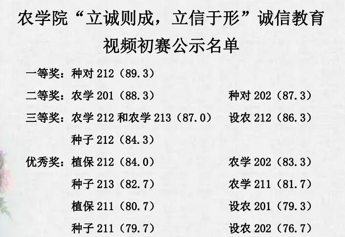 参赛通知发布之初,农学院进行广泛动员。参赛作品围绕个人成长事、诚信教育、感恩教育、励志教育、金融风险、征信风险等主题展开,角度新颖,内容积极健康,贴近生活实际。参赛作品很好地诠释了当代大学生对诚信的所思、所想、所感、所悟,赢得了评委的一致好评。比赛结束后,评委们进行了精彩的点评,并号召同学们把诚信感恩的传统美德传承下去。