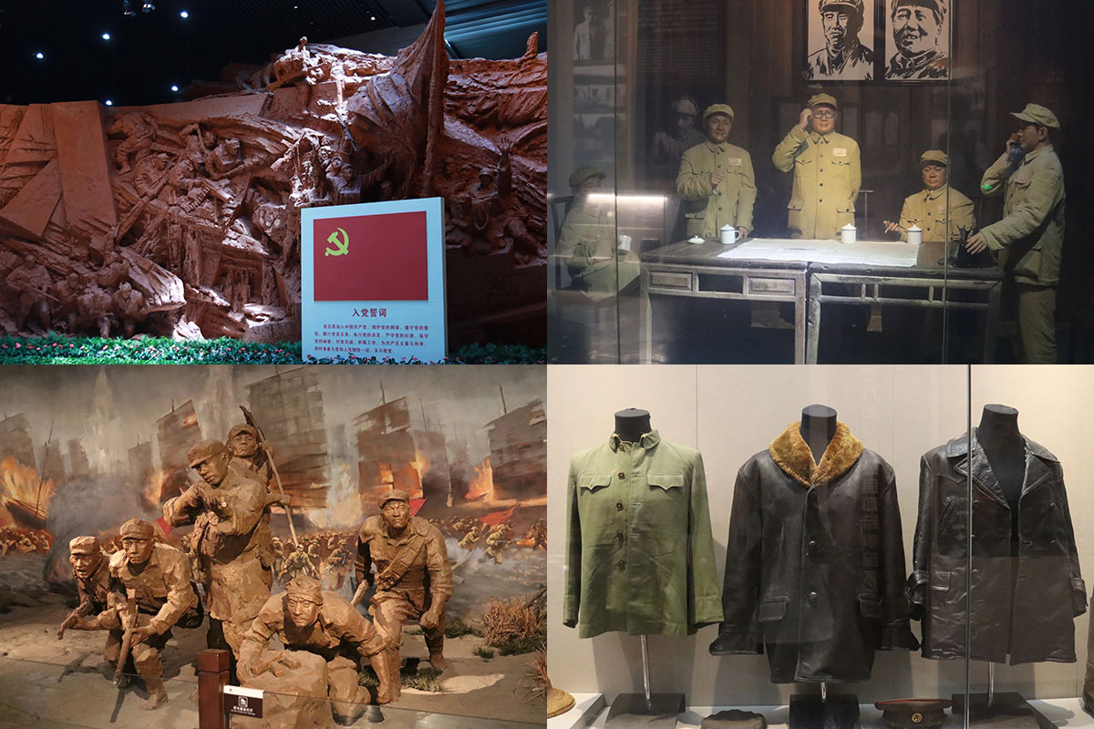 随后团队成员进入馆内,首先映入眼帘的是一组气势恢宏的大型雕塑,战士们的姿势、神态栩栩如生,仿佛再现了渡江战役的历史画面。渡江战役纪念馆共有六个展厅,分别为“战前形势”、“战役准备”、“突破江防”、“战役胜利”、“人民支前”和“英烈业绩”。馆内以实物、照片和现代声光模拟技术对历史战争场景进行再现,生动展示了渡江战役各阶段的真实情况。跟随着讲解人员的脚步,目睹馆内历史文物和珍贵照片的展出,团队成员仿佛置身于那个战火纷飞的年代,在感悟革命先辈们用烈火和鲜血铸就的“渡江精神”的同时,内心久久不能平息,可以说是一堂十分生动的党史学习教育课。