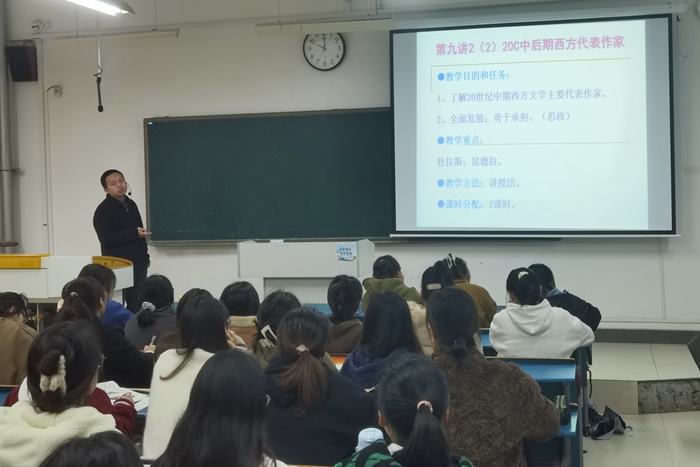 和建伟老师讲授的是《外国文学》的“20世纪中后期西方代表作家”。和建伟老师结合作品细读,对《小王子》与《情人》的创作背景、情节内容、象征寓意等进行解读,在审美鉴赏的基础上,提炼出人的和谐成长、国强才能民安等思政内容;知识传授与思政育人自然融合,收到了良好的教学效果。