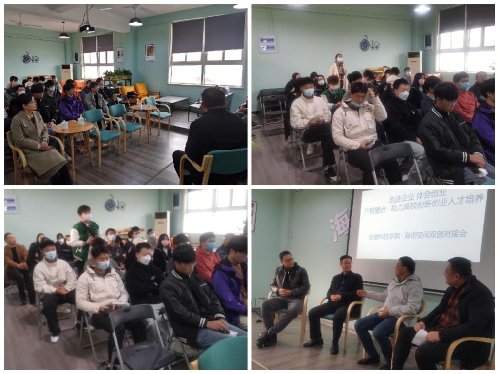 在企业参观考察时,海创空间负责人、蚌埠创新汇科技孵化服务有限公司总经理潘伟对高青海一行表示热烈欢迎,详细介绍了海创空间的发展历程、整体概况、孵化项目等,并组织同学们参观了蚌埠极向量动画有限公司、蚌埠中恒智树知识产权代理有限公司和安徽宇谷科技有限公司。同学们每到一处,都认真听取项目负责人讲解,并饶有兴趣地询问展示产品和技术的有关情况。