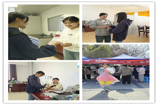 部分学生代表在教职工办公室、教室等地开展了以“花朵芬芳,传递温暖”的活动。学生会工作人员提前了解学院当天女教师的所在地点,安排好送花小分队,将玫瑰花赠予女老师。每位老师在收到花后,笑脸溢于言表,小小的浪漫给老师带来别样的喜悦。