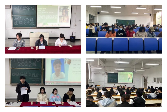 为帮助2022级学生掌握大学英语的学习方法和技巧,积极备战大学生英语四级考试,3月26日下午,外国语学院在求知楼A106和203教室分专业召开大学生英语四级考试经验交流会,学院专职辅导员张薇薇和全体2022级学生共同参加,交流会由学院主持队任星月、杨雨甜主持。
