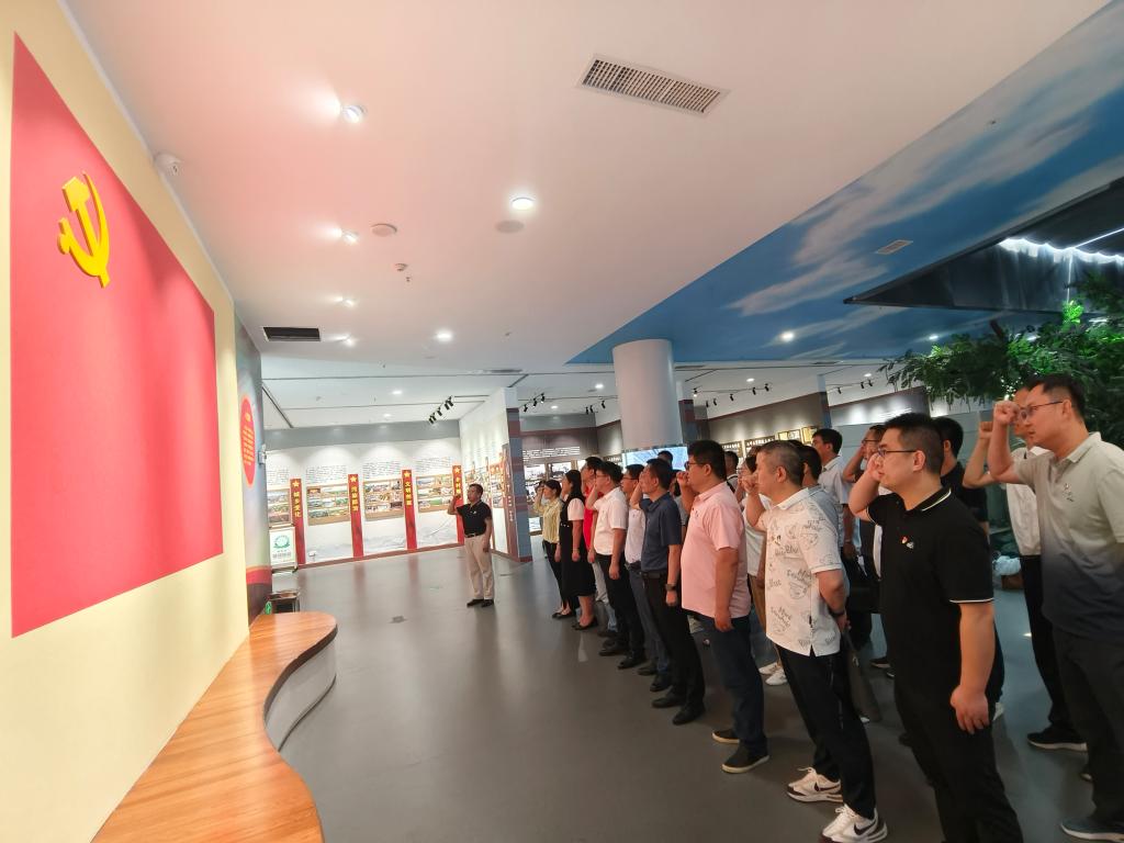全体人员首先参观了长三角红色档案珍品展厅,长三角地区是一个有着光荣革命传统的红色土地,档案展通过“开天辟地宏图起” “革命洪流风云咤” “中流砥柱御外侮” “天翻地覆慨而慷”等四个篇章,展现了中国共产党带领长三角地区人民浴血奋战,夺取革命胜利的辉煌历史。在红色记忆展厅由何世潮领誓,全体党员面向鲜红的党旗,高举右拳,重温了入党誓词。铿锵有力的入党誓词,让每一位党员再一次许下了对党忠诚、永不叛党的坚定承诺和誓言,进一步增强了党性观念,受到了深刻的师德师风教育。