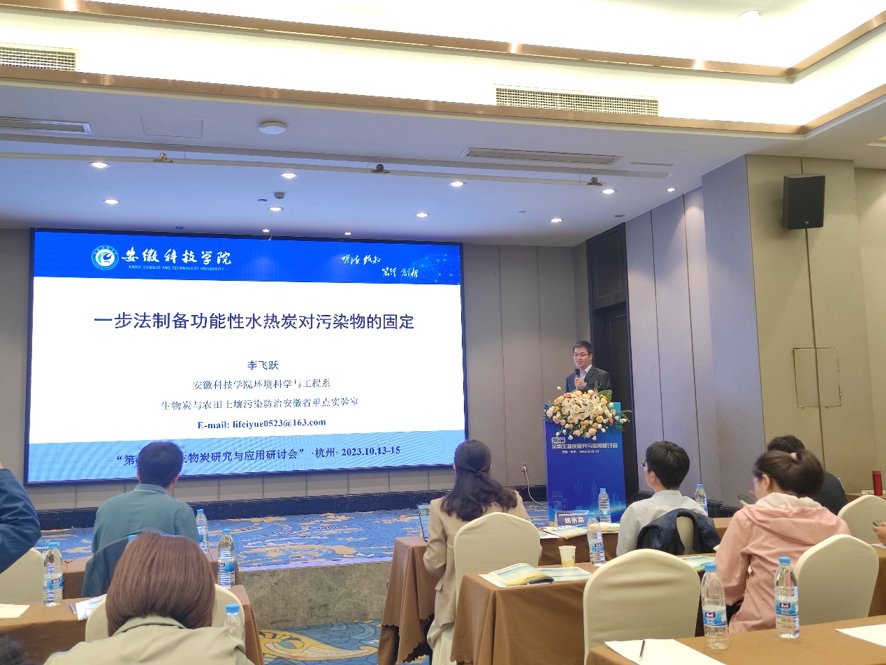 我校生物炭研发团队带头人李飞跃博士和孟凡彬博士参加会议,李飞跃作了题为“一步法制备功能性水热炭对污染物的固定”的特邀报告。会议期间,李飞跃、孟凡彬与参会的各位专家进行了广泛地交流,详细介绍近些年我校在生物炭研究方面取得的成果,并就项目合作进行了深入交流,诚挚邀请相关专家来校指导、交流。