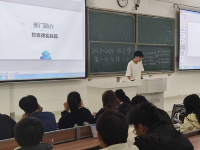 10月19日中午,校学生自律委员会全体成员在致知楼C111开展以“继往开来 再谱新篇”为主题的第一次全体大会。学生处有关教师出席会议。会议由公关策划部殷霓主持。