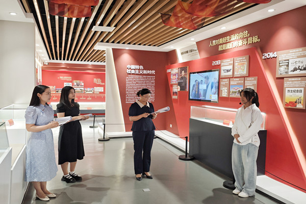 6月16日,我校大学生志愿讲解团(龙湖校区)在禾泉小镇中国共产党历史学习馆顺利完成了第二次考核。禾泉小镇中国共产党历史学习馆负责人许广娟、讲解团负责老师把安丹以及第一届讲解团成员李想、唐静静担任本次考核的评委。