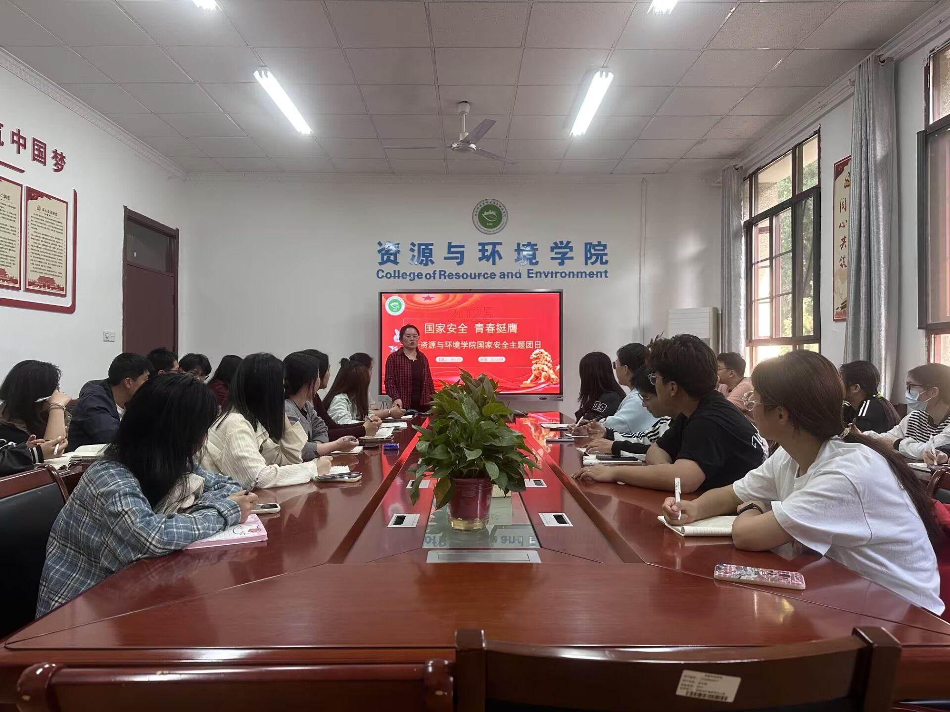 4月16日下午,资源与环境学院在学院会议室开展“国家安全 青春挺膺”主题讲座,学院团学代表参加,讲座由团委书记杨小晗主讲。