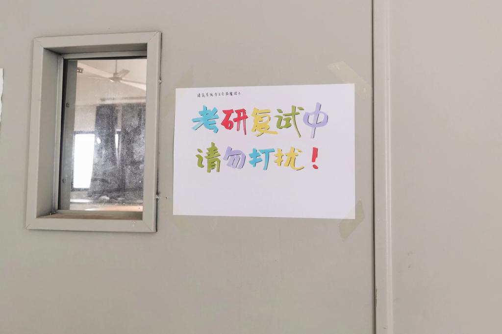 建筑学院学生会安排专人收集学生复试场所需求并分类整理,对房间进行打扫清理,测试网络,张贴醒目标志,确保线上复试软硬件条件符合要求。对于个别高校提出的复试期间不能出现外界声音,建筑学院及时联系校后勤保障部,确保学生当天复试所在楼层无上下课铃声。