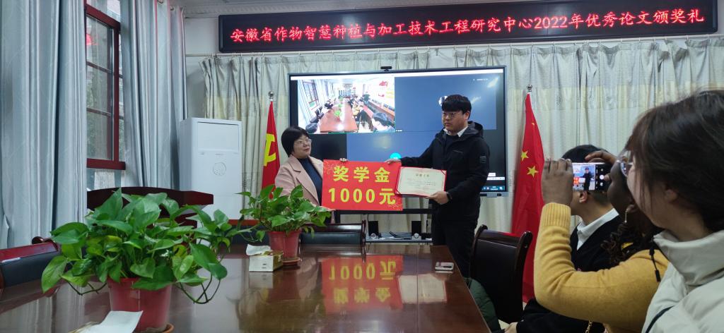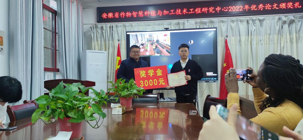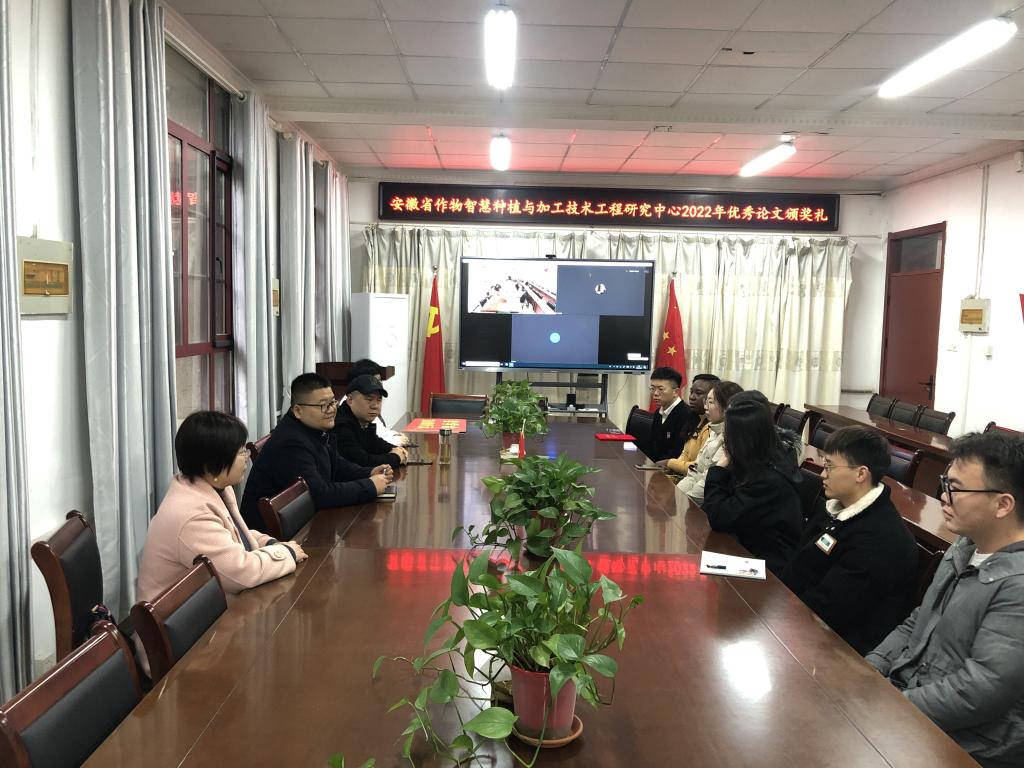 3月22日上午,安徽省作物智慧种植与加工技术工程研究中心2022年度优秀论文颁奖典礼在开云网页版农学院会议室举行。农学院副院长李文阳、安徽省作物智慧种植与加工技术工程研究中心主任任兰天、及部分团队成员邵庆勤、甄凤贤及课题组全体研究生参加了本次颁奖典礼。