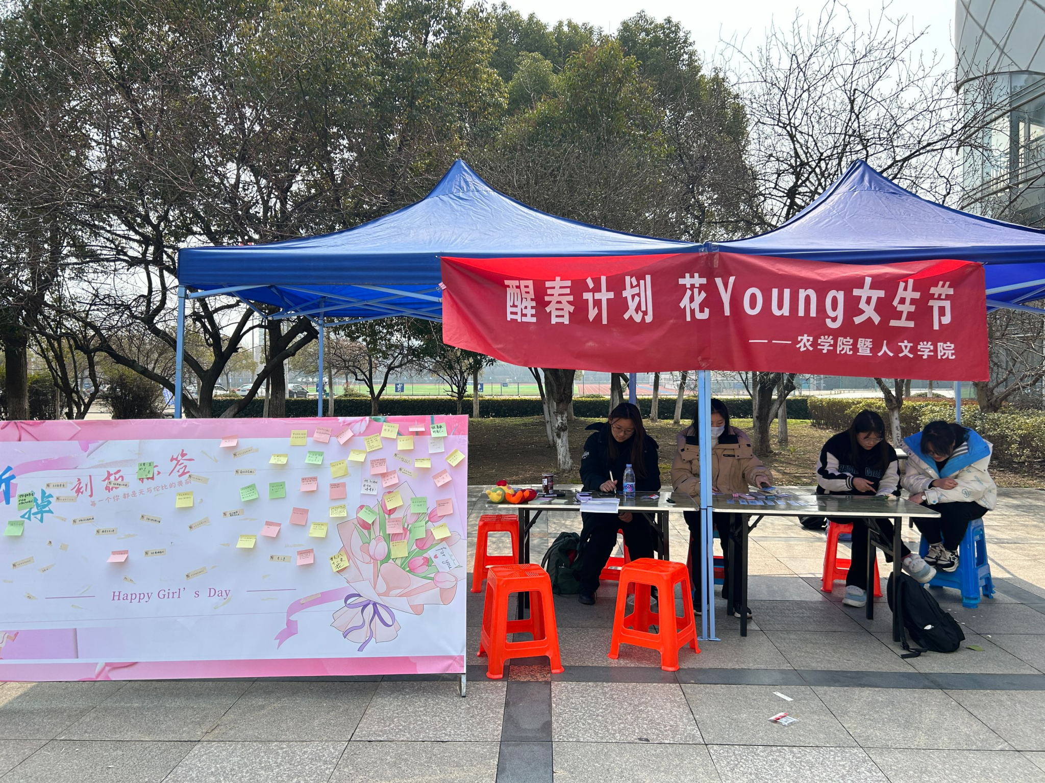 春风有信,花开有期。为丰富校园精神文化生活,彰显新时代女生自尊、自强、自信、自爱的风采,3月7日,人文学院与农学院在西区小广场联合举办“醒春计划,花Young女生节”游艺活动。