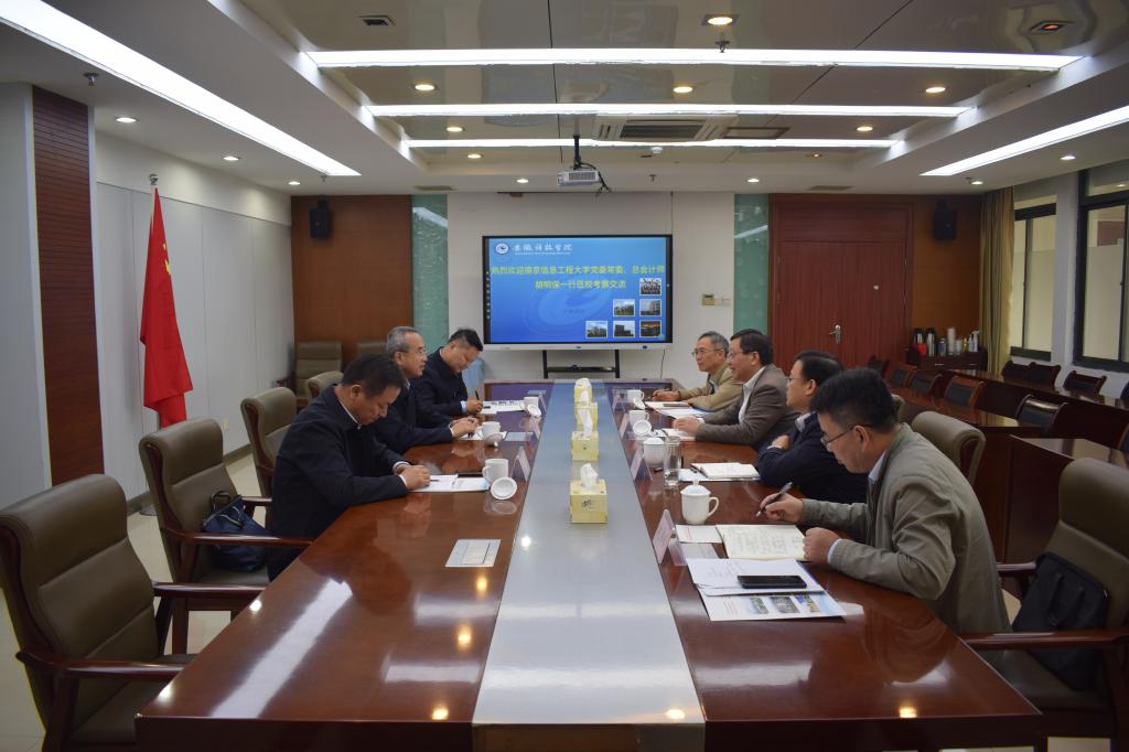 11月9日下午,南京信息工程大学党委常委、总会计师胡明保率发展规划处、金牛湖校区管委会负责人莅临我校考察交流工作。党委委员、副院长黄远友及党委(校长)办公室、发展规划处、教务处负责人热情接待了客人一行。