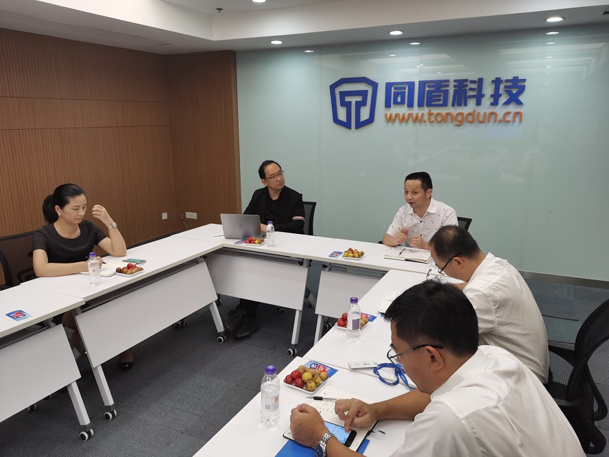 调研组一行首先参观了同盾科技“AI空间站”展厅,对公司的产品体系、应用场景及发展方向进行了详细了解。在展厅交流互动环节,马骏驱详细介绍了同盾科技智能风控解决方案、智能分析决策在金融领域的实践及行业智能反欺诈解决方案的最新成果及实践应用情况。了解到同盾科技助力杭州沪杭甬高速公路智慧交通工程建设、联合唐山银行共建唐山市中小企业综合金融服务平台等典型案例后,就数字蚌埠、科技赋能助力皖北地区数字化进程等领域的合作,双方均表达出了强烈的合作意愿。