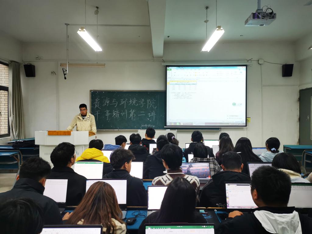 为提高学生干部综合事务能力,规范学生工作文本材料,11月21日下午,资源与环境学院在新知楼A111开展学生干部培训第二讲。非毕业班全体学生干部参加,会议由学生会执行主席陈汉主讲。